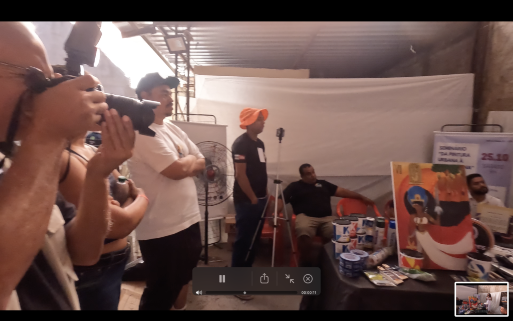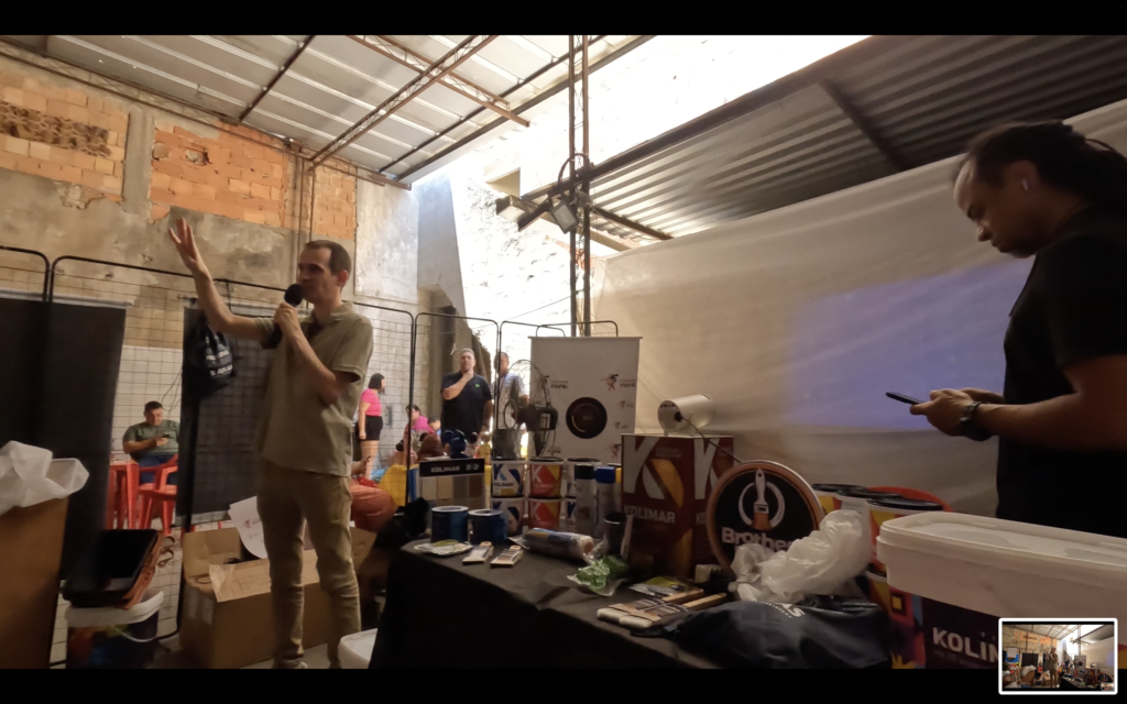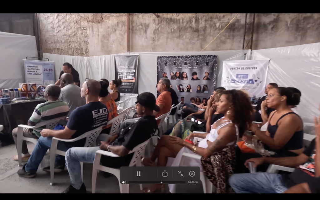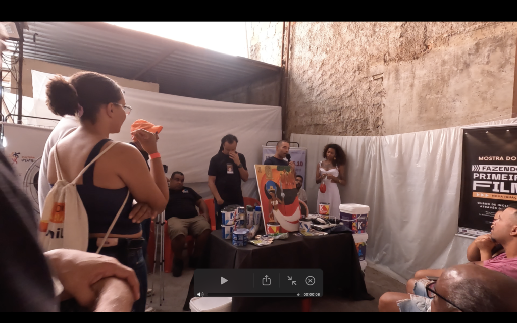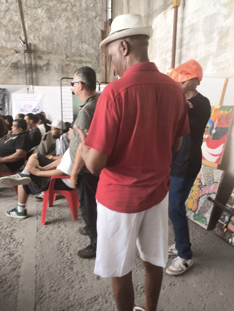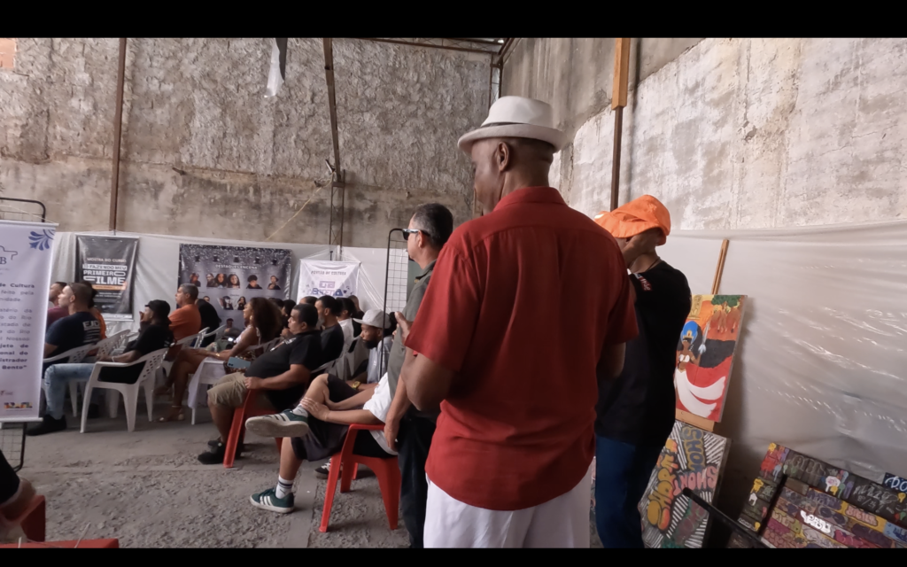 O encontro também contou com debate entre grafiteiros e artistas da cena urbana, estimulando reflexão sobre caminhos da arte pública, circulação, reconhecimento e responsabilidades no uso do espaço. Complementando a dimensão formativa, a programação incluiu exibição do filme “Jaceruba”, de Wagão Paiva, reforçando a importância do audiovisual como registro e memória da cultura local, além de intervenções culturais com o sambista Edu Miranda (voz e violão) e outras participações artísticas que contribuíram para um ambiente de celebração e pertencimento.