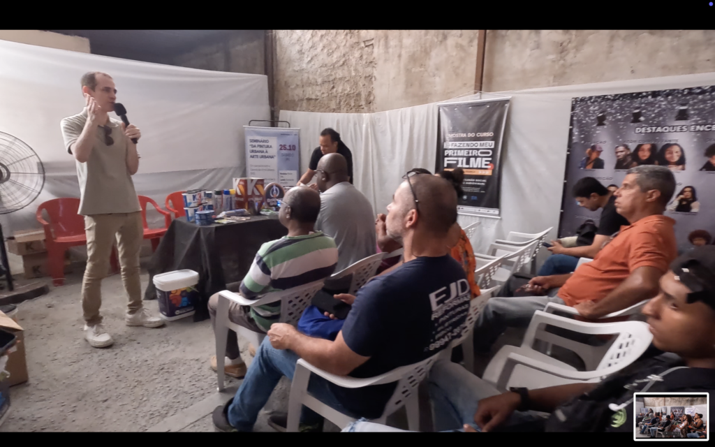 No dia 25 de outubro, o Pontão de Cultura Cia Encena realizou o Seminário “Da Pintura à Arte Urbana”, uma atividade formativa com foco em troca de experiências, articulação de rede e fortalecimento do ecossistema cultural de Nova Iguaçu. O encontro integrou a agenda de workshops do Pontão e reuniu pintores, grafiteiros, artistas visuais, empreendedores, representantes de empresas do setor e comunidade, criando um ambiente de aula aberta com networking e conexões estratégicas.