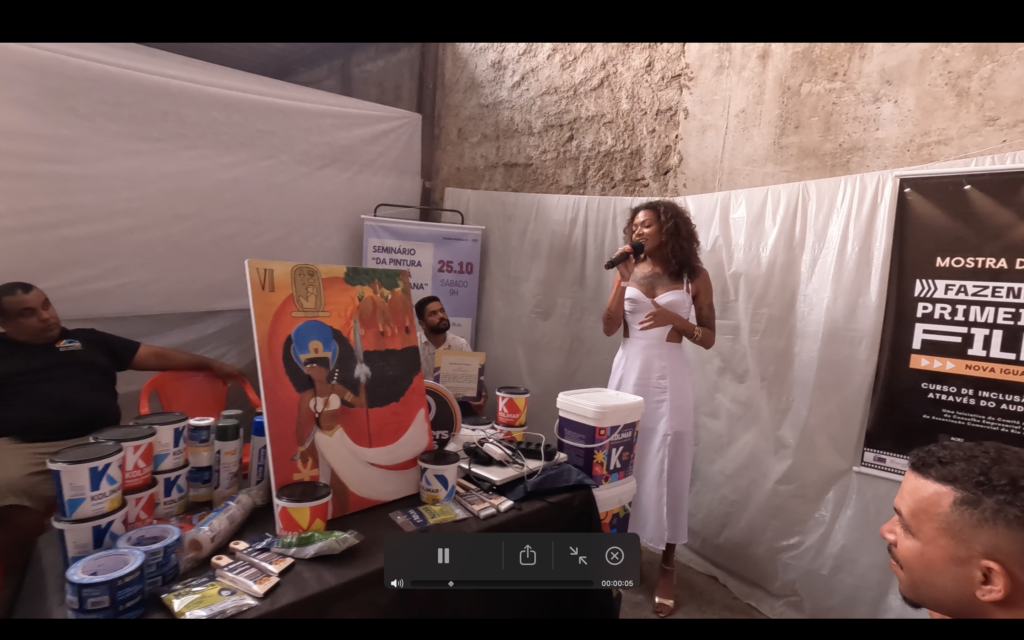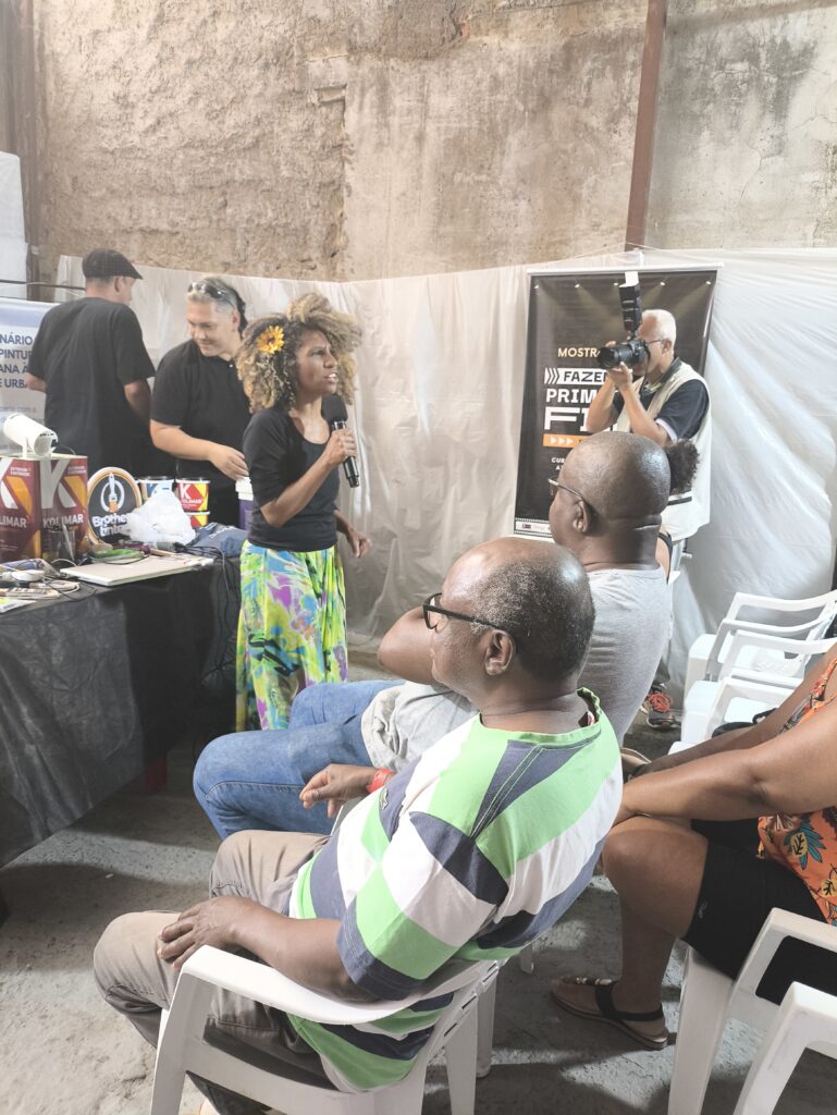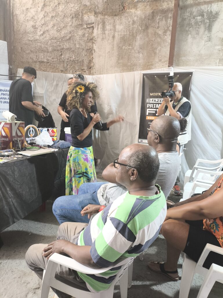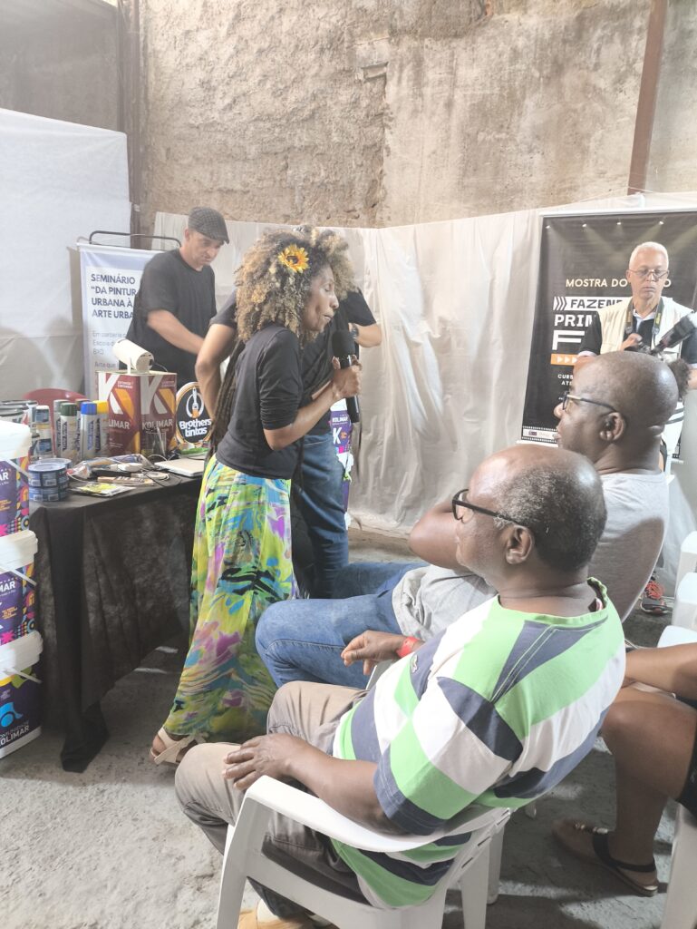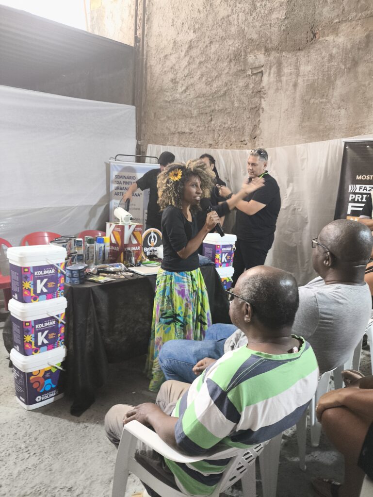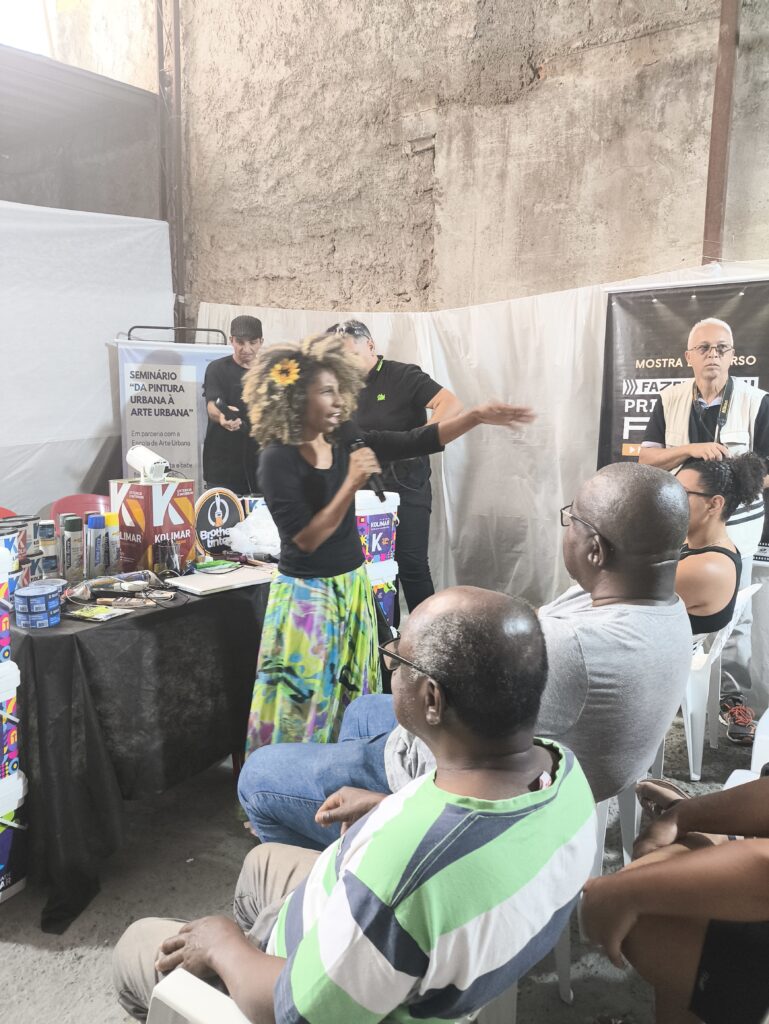 No eixo de profissionalização e mercado, o seminário abordou temas diretamente ligados à sustentabilidade do fazer artístico. Houve palestra sobre marca pessoal e posicionamento no mundo do trabalho com Carlos Mendes, além de diálogos sobre o papel das empresas no apoio à arte urbana e sobre inovações e materiais para produção, com participação de representantes da Brother Tintas e da Kolimar Tintas. Esses momentos foram fundamentais para ampliar o repertório dos participantes sobre oportunidades, parcerias e estratégias para fortalecer a presença e a atuação profissional de artistas e produtores culturais.